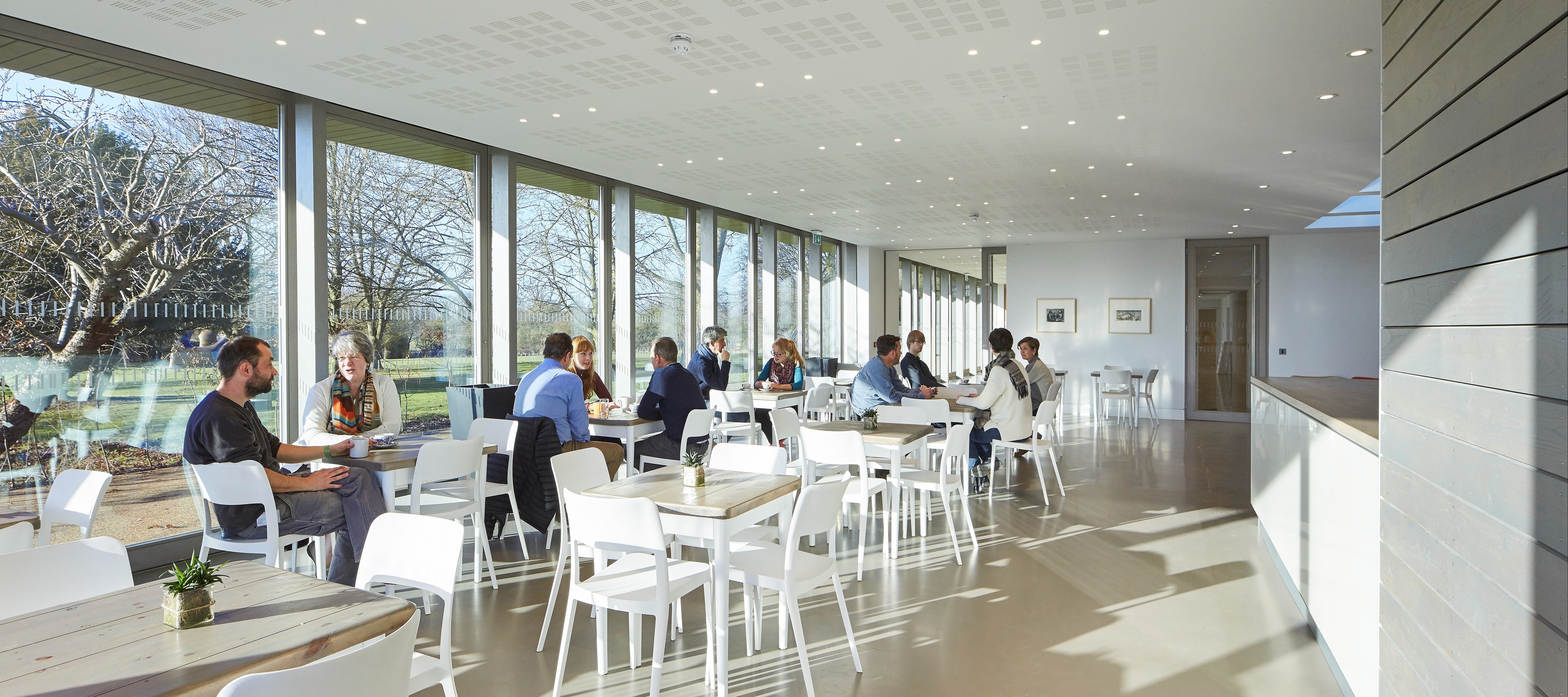 The café can seat up to 50 covers, with an additional seating for 50 on an exterior terrace overlooking the sculpture lawns. There is additional capacity for 40 covers in an adjoining room on Saturdays, Sundays and Bank Holidays. Our event spaces have a capacity of up to 120 seated guests.