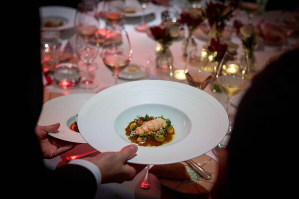 Guests were treated to a unique six course menu with dishes including langoustine and English saffron with sweet cicely, carrot and coriander created by Smyth, and seabass and squid, aubergine and bouillabaisse crafted by Roux.