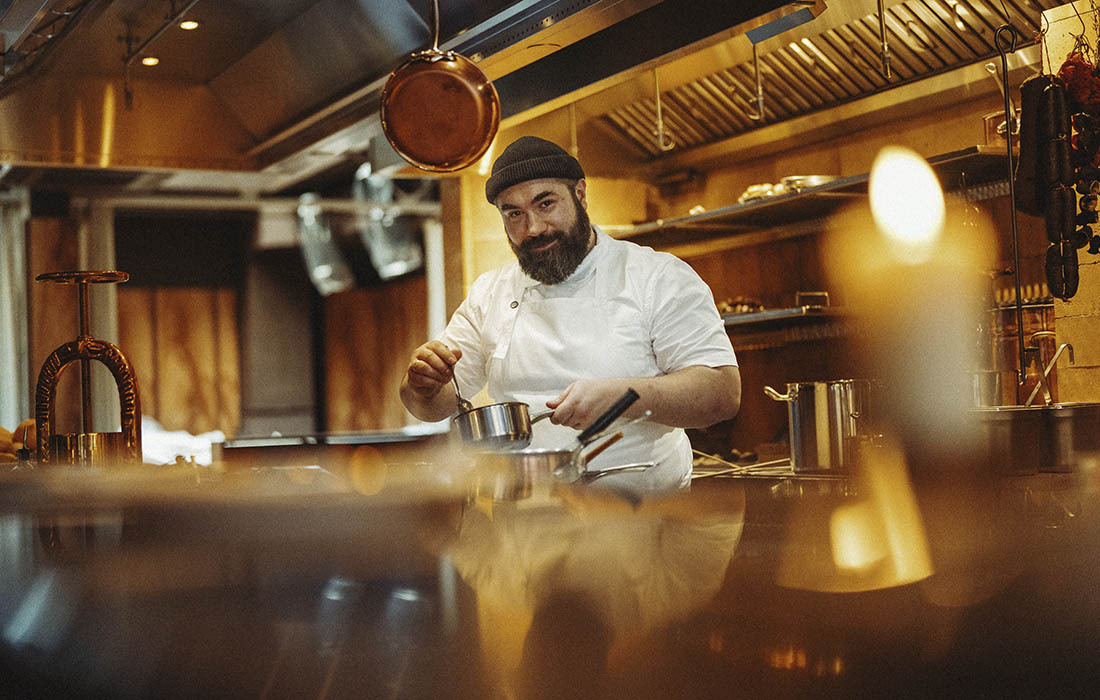 Typical dishes Crushed smoked potato with Hikari miso; Lyonnais and crème fraîche capoletti in lamb brodo