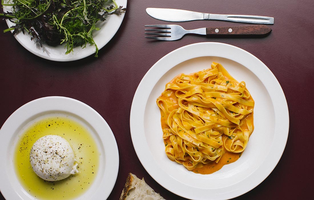 Typical dishes Mondeghili meatballs; penne alla vodka; tagliatelle al burro e Parmigiano