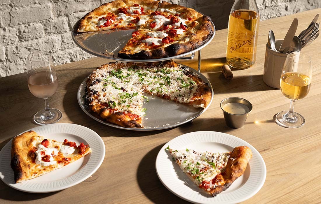 Abbie Roden and Will Sandbach, the founders of Amie wine studio in London’s Victoria, are to launch an all-day thin-crust pizzeria. Located right next to the wine bar in Eccleston Yards, Weezie’s showcases pizzas made from regeneratively farmed flour alongside a selection of small plates created by head chef Sumant Sinai, previously of Circus Pizza in Panzer’s and Share a Slice.