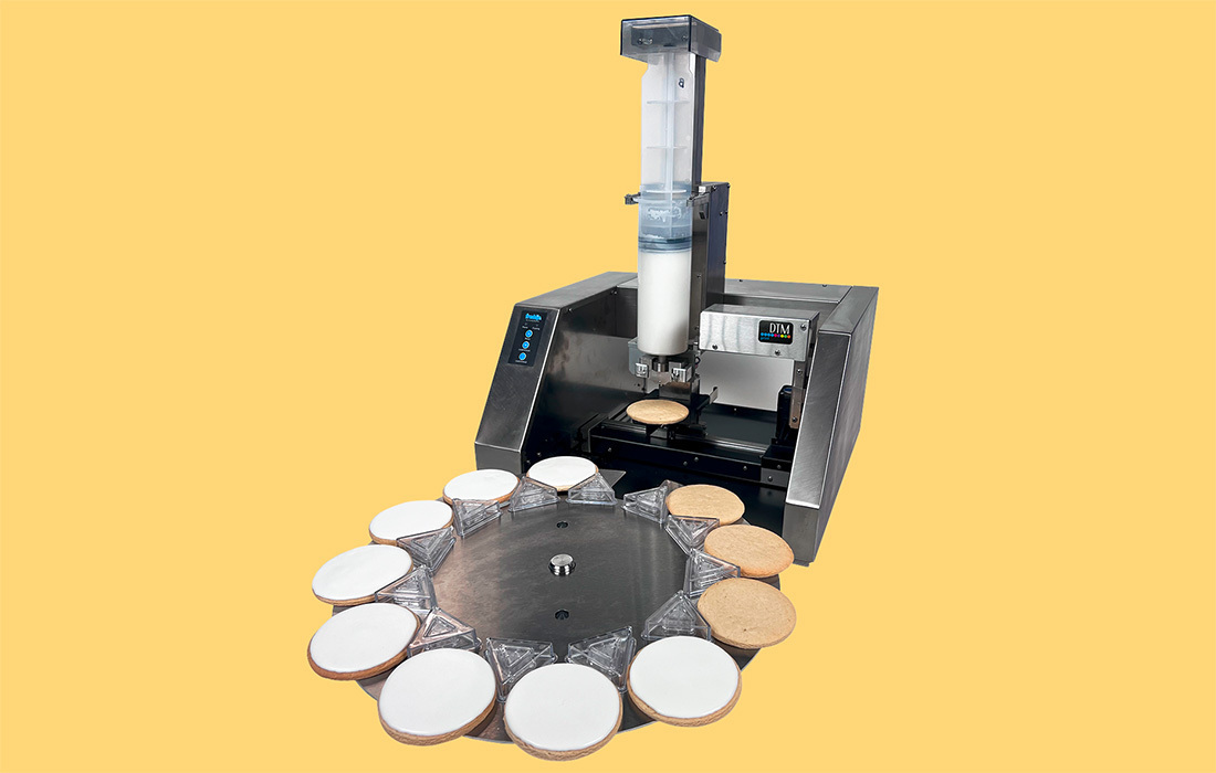 DTM Print has launched Freddie, a new robotic frosting machine designed to automatically outline and fill biscuits and other confections with icing and frostings. Certified by NSF, it utilises an advanced vision system called FreddieVision and topographic sensors to analyse individual icing recipes and the surface characteristics of each biscuit. This technology allows Freddie to calculate the exact amount of icing required and its precise placement. Freddie operates in both carousel and manual modes, with the carousel able to accommodate up to 12 biscuits at a time. Each filled tube can frost approximately 36 biscuits with a diameter of 8cm at a speed of around one minute per biscuit, depending on frosting thickness.