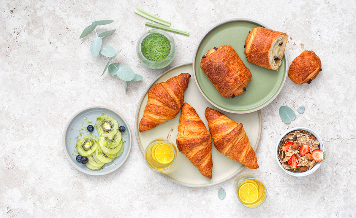 French bakery manufacturer Bridor has introduced a collection of vegan Viennese pastries, including two French-style pastries (vegan croissant and vegan pain au chocolat) and four gourmet vegan pastries (vegan cherry and flax seed crown; vegan orange and hazelnut crown; vegan vanilla and hazelnut crown; and vegan raspberry-filled croissant). The pastries are made using margarine and French wheat flour, giving the products a light and crisp texture. A vegan egg wash substitute, made of pea protein, water and sugar, creates a golden top.