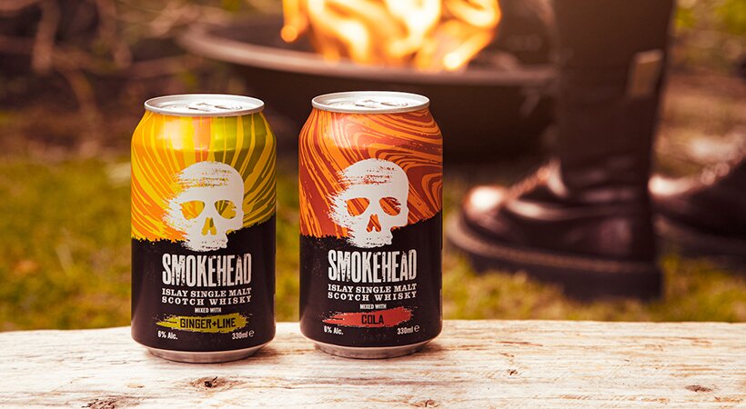 Smokehead Islay Single Malt Whisky is available in a ready to drink can in two flavours: Smokehead and cola and Smokehead with ginger and lime.
